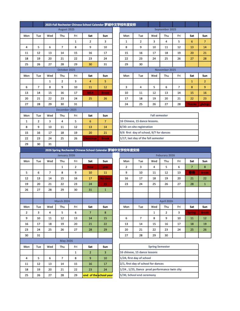 罗城中文学校2025秋季课程表